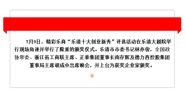 榮獲“樂清十大創(chuàng)業(yè)新秀”稱號