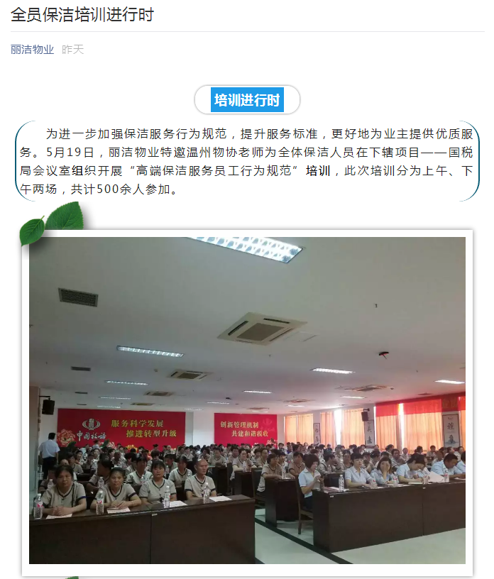 全員保潔培訓進行時